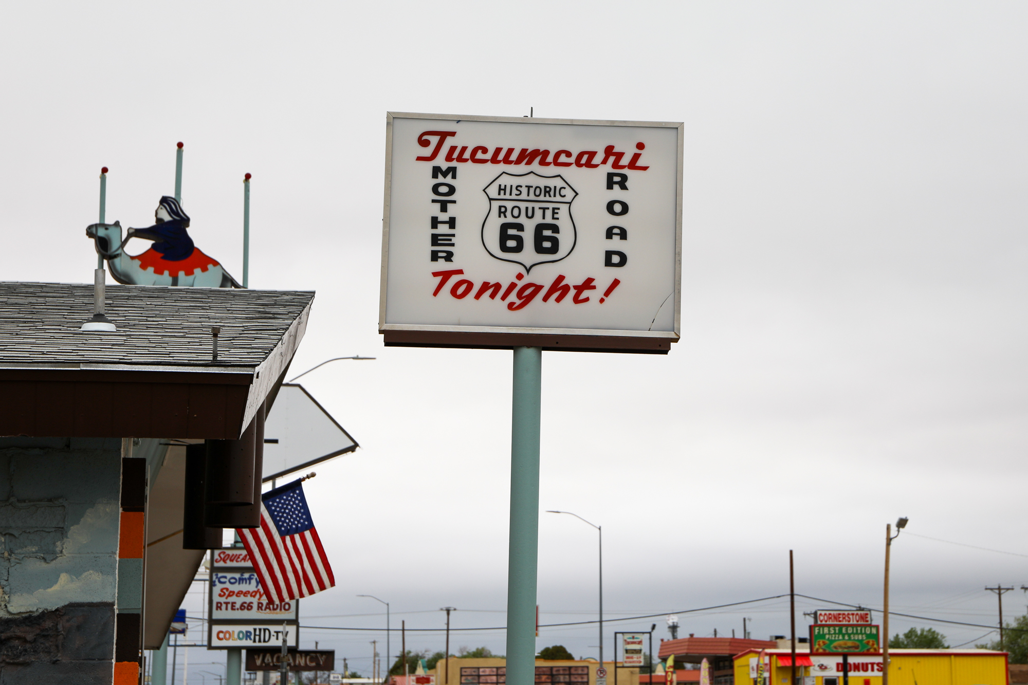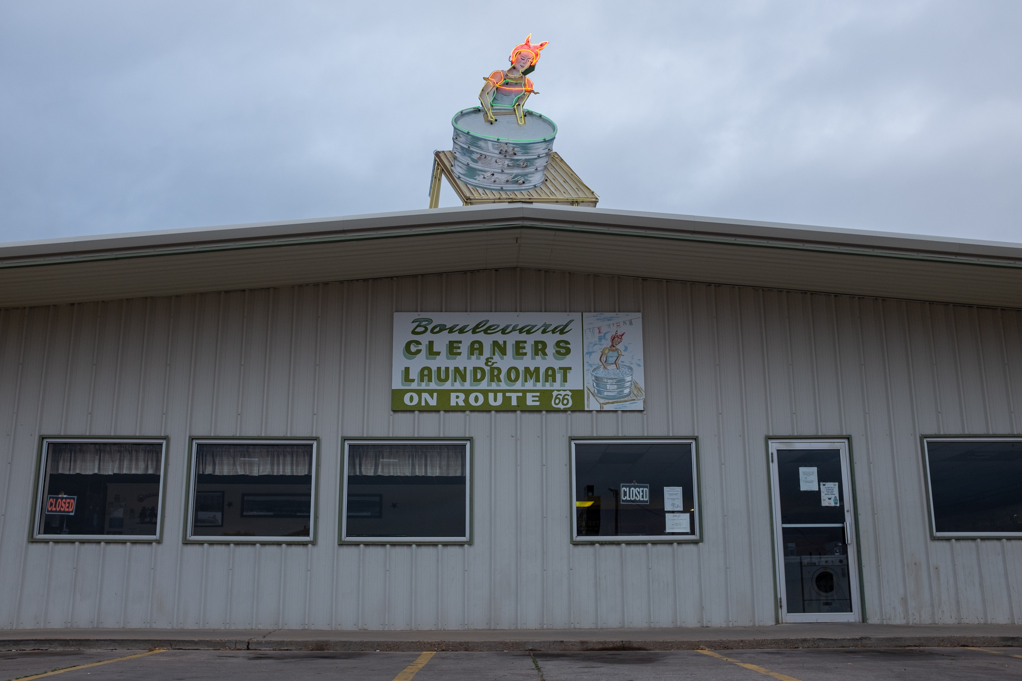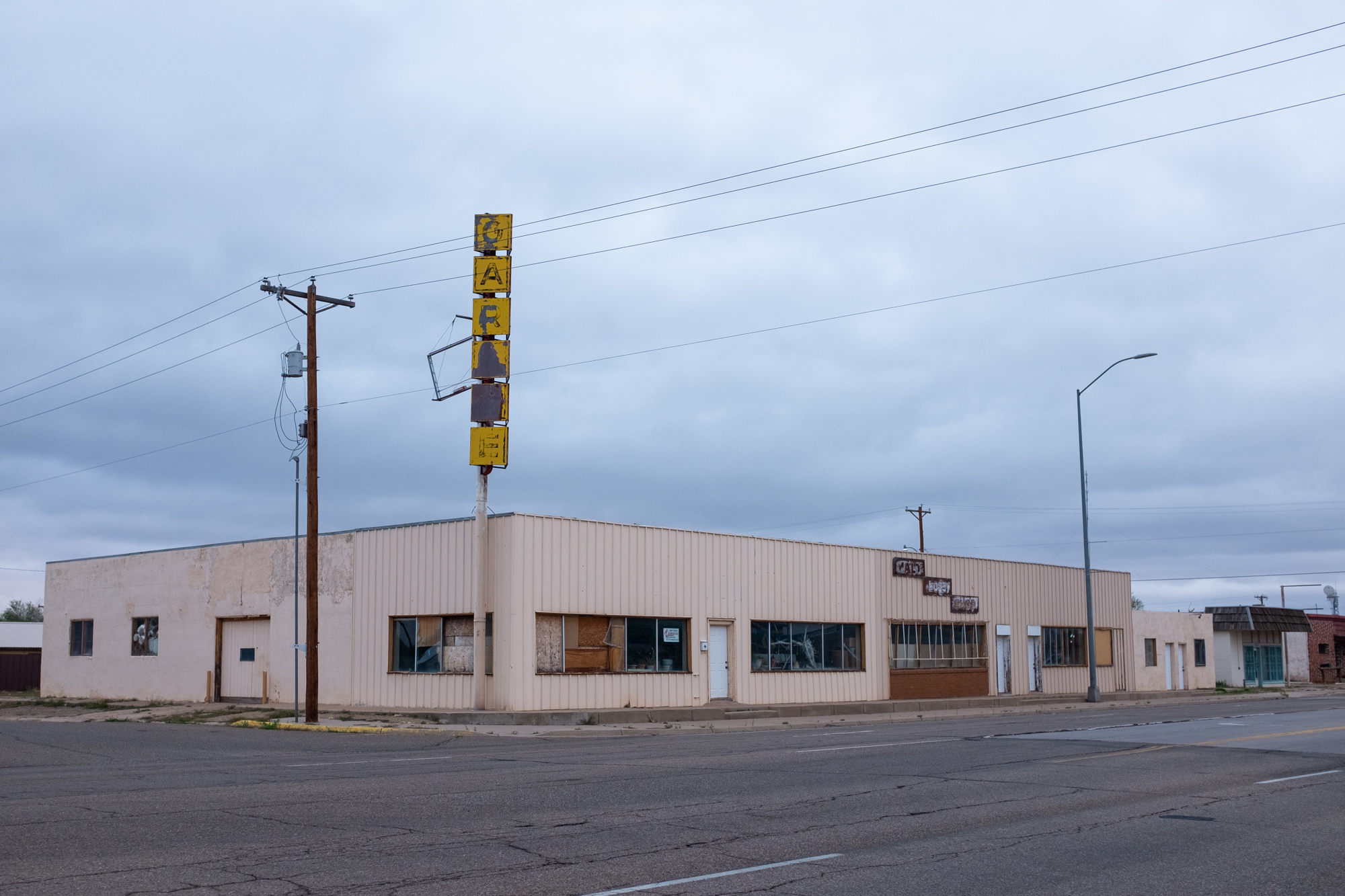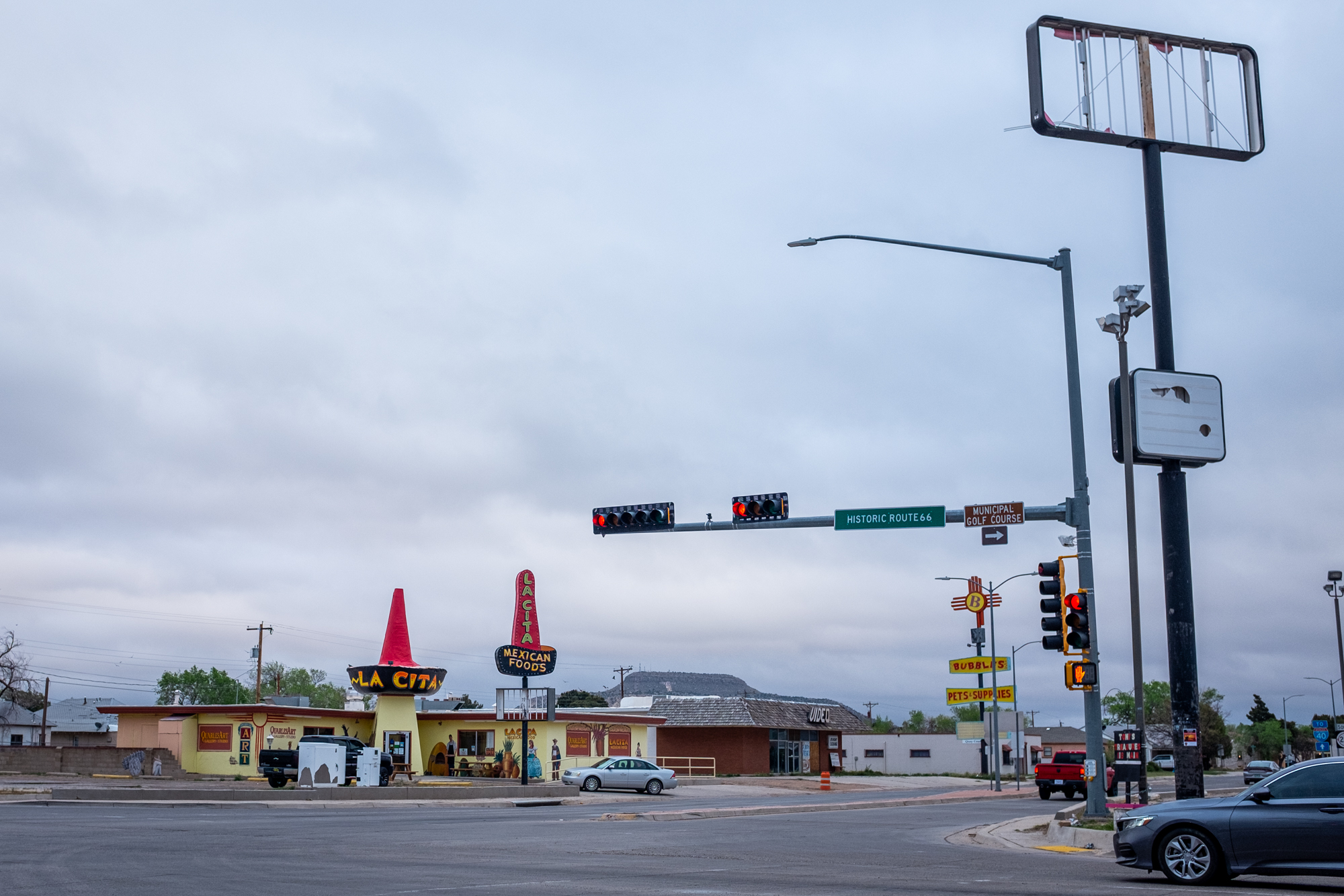 It earns that accolade because it gave me one of the most thorough and intimate windows into the Route 66 experience. I booked a room at the Roadrunner Lodge (one of the few pet-friendly motels in town), and initially did a short photo-walk around that stretch of Route 66. It was definitely peppered with abandoned establishments, but there were signs of life. The kitsch and burned-out neon I’d come for: some actual relics and some new things made to look old, an anachronistic village unsure of its era.